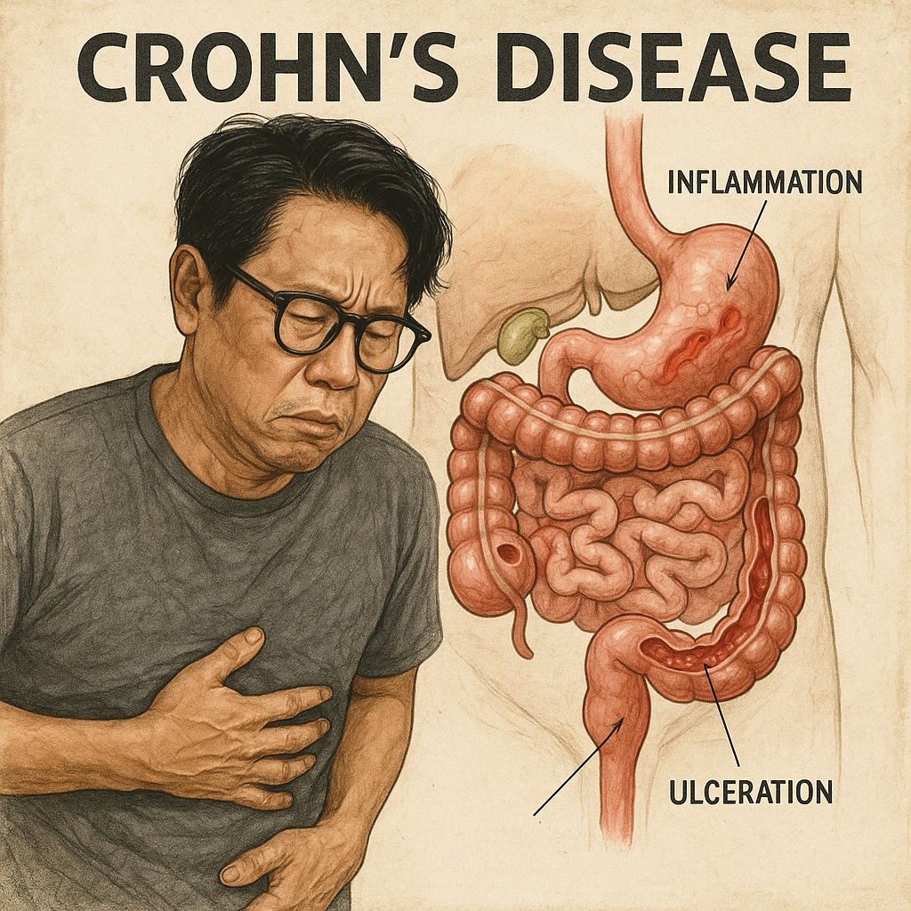 크론병은 전장(입~항문)에 걸쳐 발생할 수 있는 만성 염증성 장질환(IBD)입니다